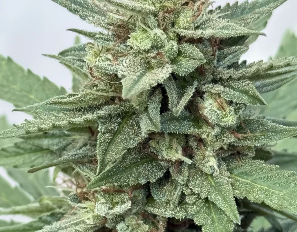 Este híbrido se caracteriza por una estructura compacta pero robusta, con cogollos densos, pegajosos y cubiertos de resina cristalina. Su perfil «frosty» y su potente aroma lo convierten en una excelente opción para cultivadores que buscan un resultado de alto nivel tanto en estética como en calidad.