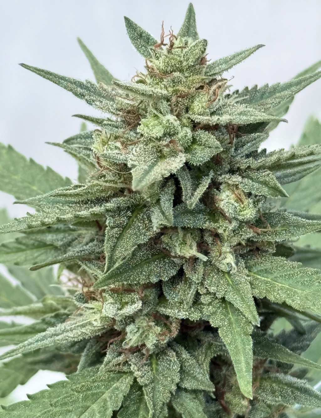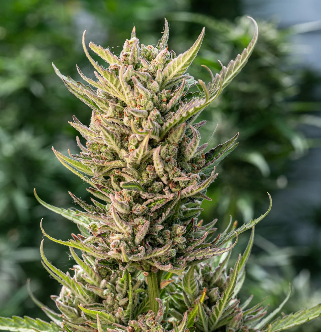 Este híbrido se caracteriza por una estructura compacta pero robusta, con cogollos densos, pegajosos y cubiertos de resina cristalina. Su perfil «frosty» y su potente aroma lo convierten en una excelente opción para cultivadores que buscan un resultado de alto nivel tanto en estética como en calidad.