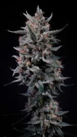 Para esta creación, seleccionamos como madre el fenotipo #2, destacado por su increíble producción de resina, su intenso color morado oscuro y su exótica estructura piramidal. Como padre se eligió el fenotipo #5, por sus cualidades excepcionales y gran vigor.