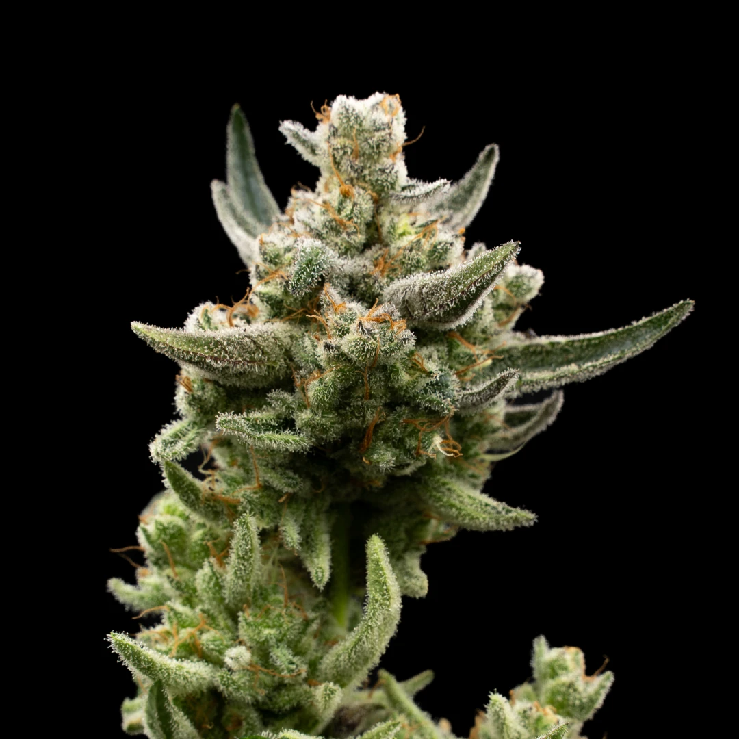 Esta auto desarrolla un porte firme y equilibrado, con ramas laterales que sostienen flores pesadas y totalmente cubiertas de resina. Desde las primeras semanas ya se puede ver su tendencia a cristalizar, una característica que la vuelve ideal para quienes buscan resultados visualmente impactantes.