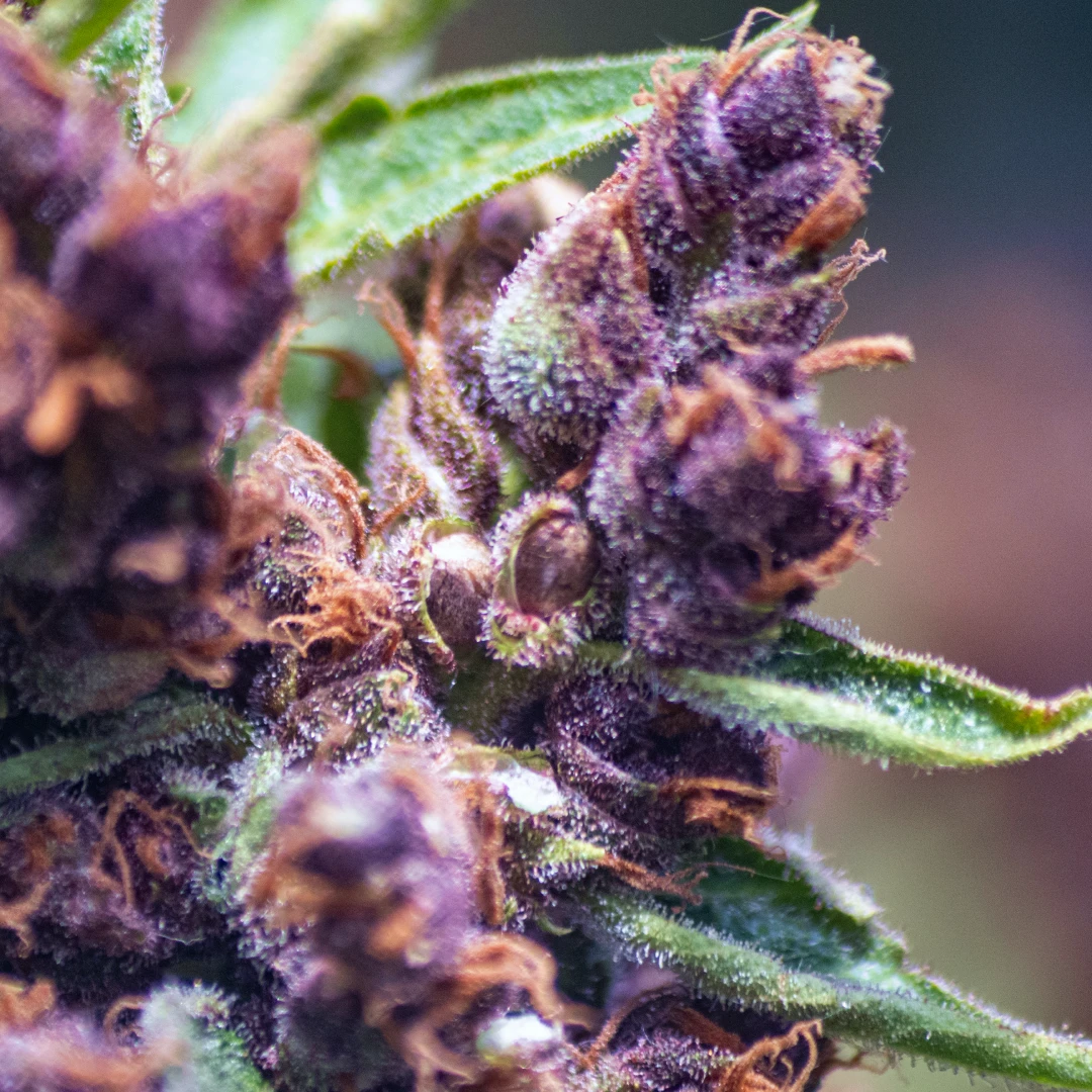 Se trata de una variedad híbrida con tendencia sativa, de gran vigor y estructura alargada, capaz de ofrecer producciones sorprendentes. Su perfil visual es impactante: puede presentar desde tonos púrpura, rosa, violeta y lila hasta variantes en verde oscuro salpicadas por matices morados. A nivel de resina, destaca por su espectacular producción de tricomas morados, lo que le confiere una apariencia exótica y única.